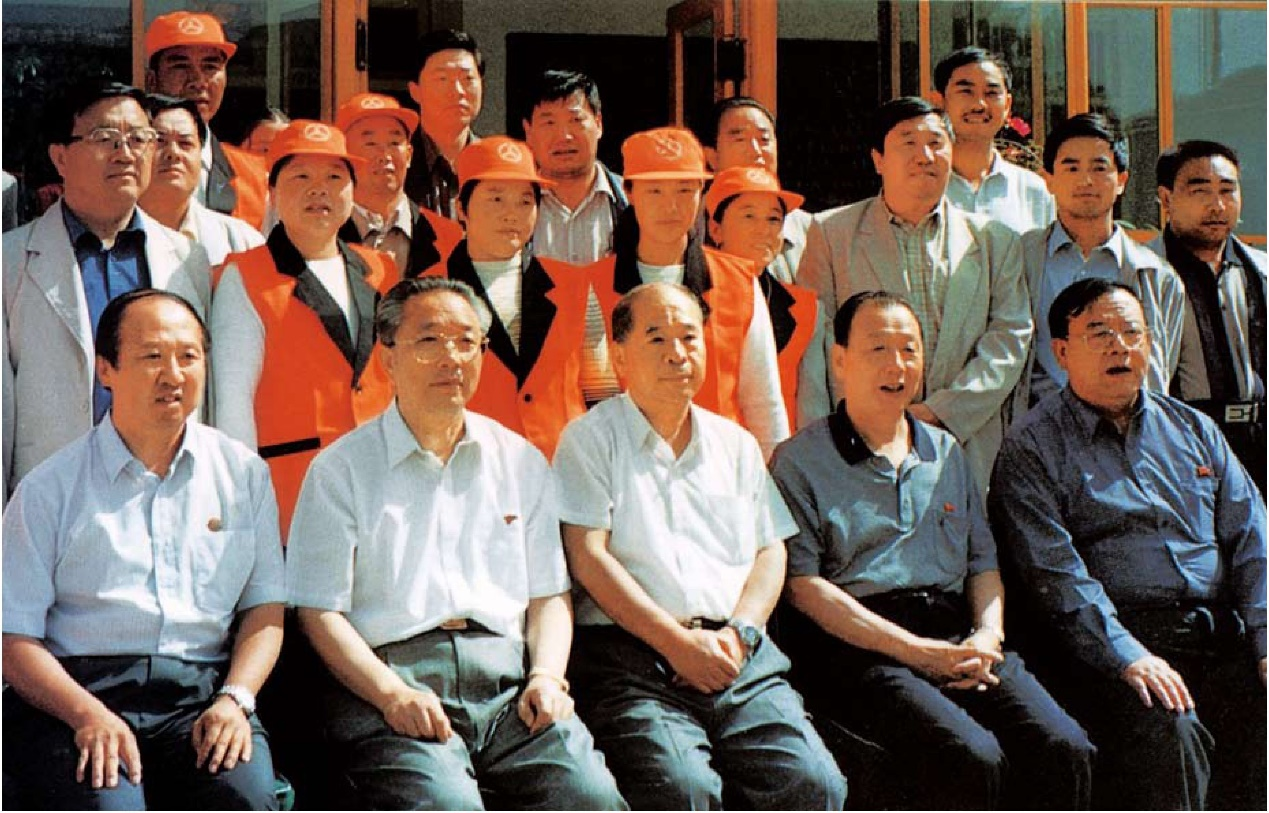 1999年6月,时任中共中央政治局常委、中纪委书记尉健行(前排居中)在武威接见养路工人并合影