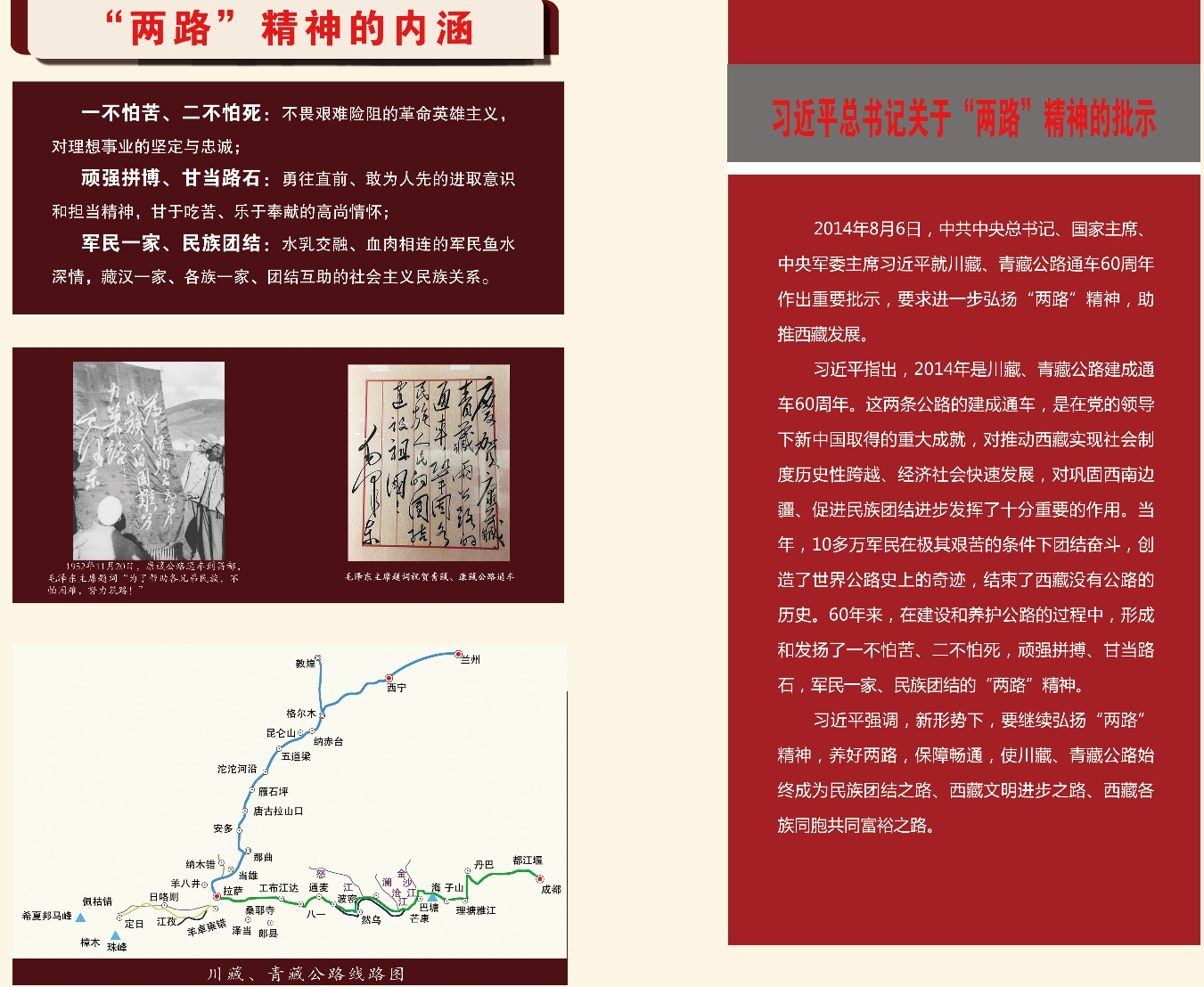 热血和汗水铸就的“高原天路”,卓越功勋彪炳千秋,永载史册。波澜壮阔、气壮山河的筑路、养路壮举,涌动着感天动地的“两路”精神。