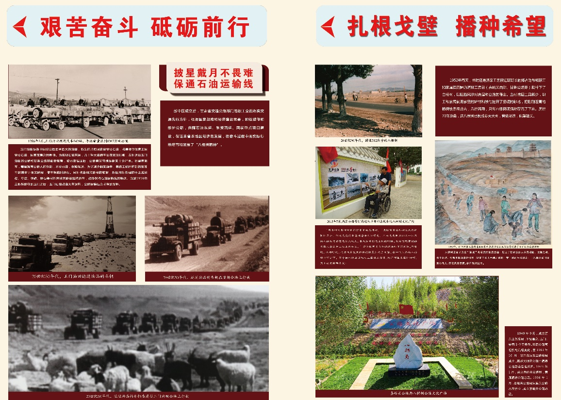 新中国成立后,甘肃省交通公路部门的职工全面落实交通先行方针,根据国家战略和经济建设需要,积极整修和维护公路,保障石油东运、物资西运、国家重点项目建设,保证本省本地区经济的发展,扎根戈壁,艰苦奋斗,无私奉献,甘当路石,在奋斗过程中用实际行动培育和发展了“八棵树精神”。