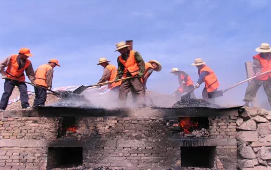 顶着炎炎烈日,踏着滚烫炒盘,手中的铁锨快速地挥动,翻炒着裹满沥青的砂石,脚底烫如烙铁,身上汗如雨下,刺鼻的沥青味扑面而来,他们全然不顾,橘红的身影来回闪动,洒油、翻炒、装车,团结协作,日复一日,年复一年。这种场景正是上世纪七八十年代养路职工炒盘上拌和油砂的亲身经历。