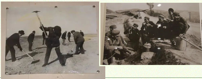 漫天黄沙下,我听到了,那一群黑瘦的汉子,他们举着洋镐、挥着锄头、抬着箩筐,肩挑人抬运送土方时喊着的号子声……还有那些裹着头巾的女子们,拿着扫帚、举着耙子、摇着筛子,手提锹挖筛选砂石时唱着的歌谣……