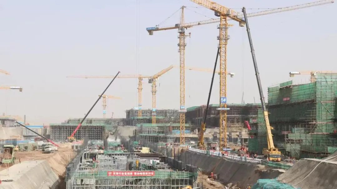 兰州中川国际机场三期扩建工程综合交通中心施工场面