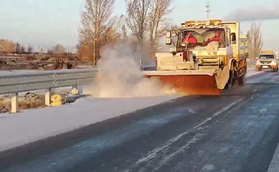 酒泉公路事业发展中心采用机械梯队式作业,人工在陡坡、急弯等路段撒布防滑料的方式对降雪路段开展除雪作业,并通过抖音直播为司乘人员答疑解惑,提供出行指南和帮助。截至15日11时,共出动人员265人/次,机械设备90台/套,撒布融雪剂89吨,防滑料97立方米。(刘筱)