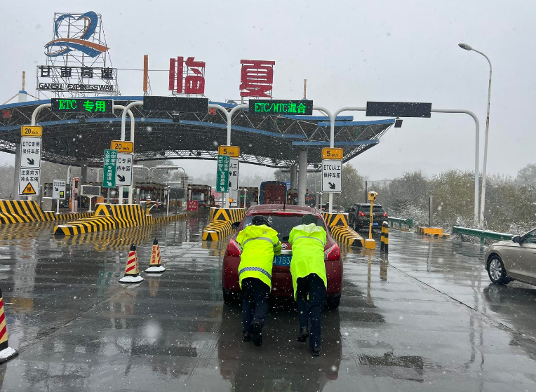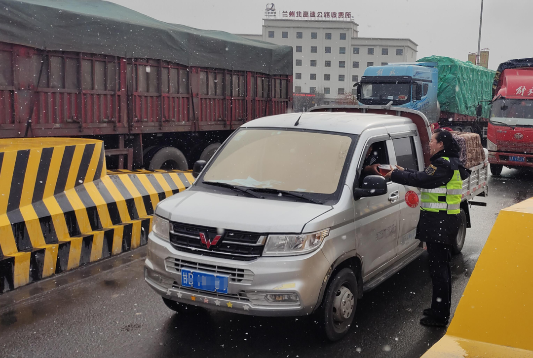 武威高速公路处永山收费所安排应急保畅人员分梯队有序加班备勤,明确分工,责任到人,应急保畅人员扫雪除冰、疏堵保畅、拒超劝返……全员齐心协力,轮班有序工作,并为滞留司乘人员提供热水、方便面,清除车牌积雪等多项便民服务。(赵小英 施健宏)