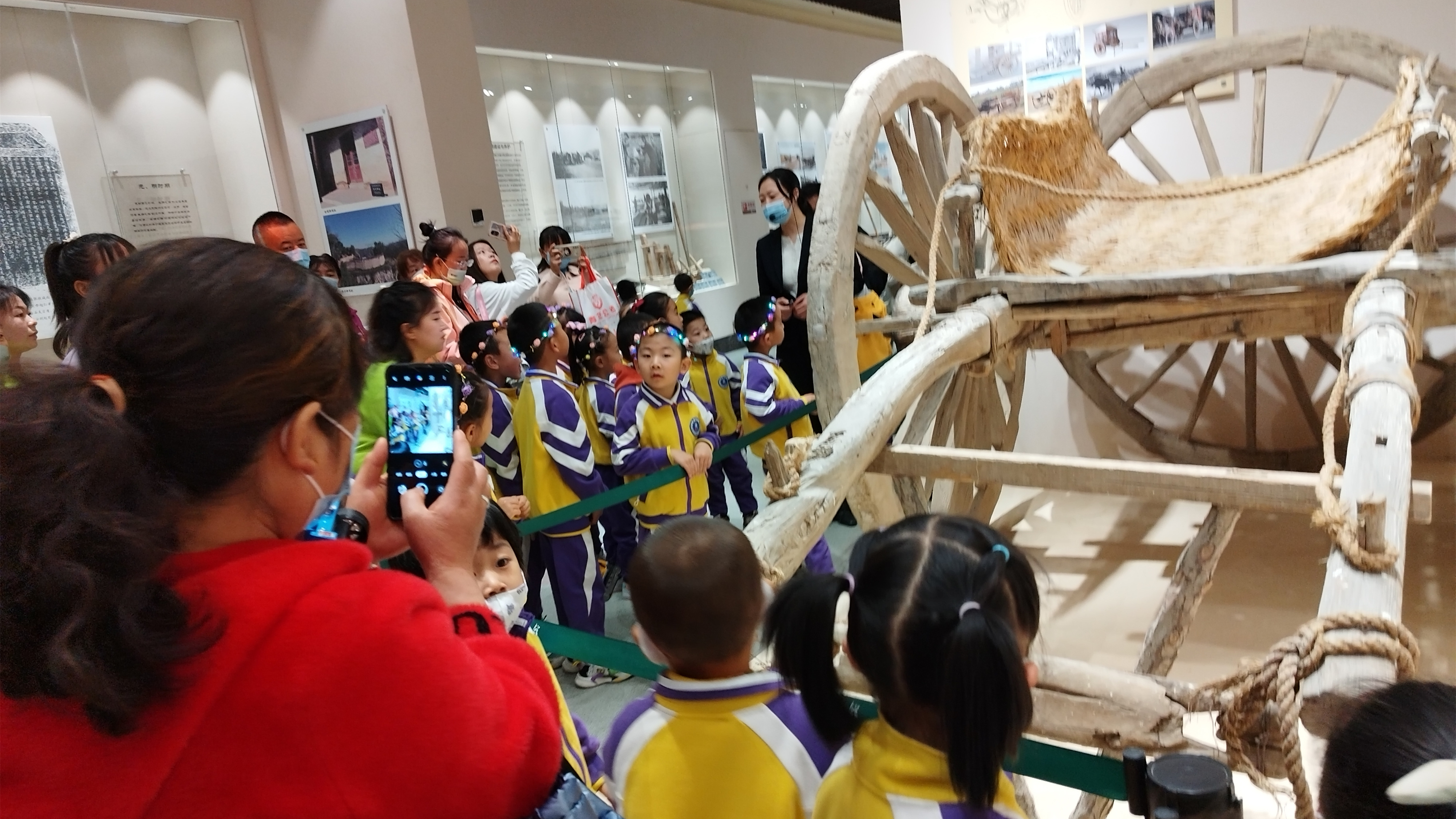 活动开始,讲解员首先向大家介绍了五一国际劳动节的由来和相关知识,让劳动意识扎根孩子心中,同时充分利用丰富的馆内藏品资源,用喜闻乐见的互动形式,向小朋友讲述了交通部门在奋斗过程中使用过的各类劳动工具和机械设备,通过毛驴刮路车、炒盘拌料等复原场景带领大家感受交通人自力更生、艰苦奋斗的优秀品德。在参观学习过程中,孩子们也认识了甘肃交通部门中的全国劳动模范。讲解员鼓励小朋友们向劳模学习,从身边的小事做起,争取自己的生活自理自护,同时也能帮助他人,在劳动创造中获得幸福。