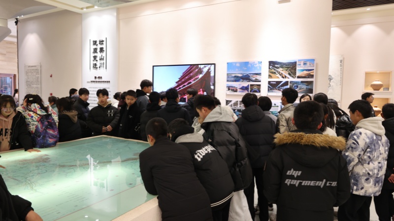 在室内展厅“壮美山川,陇原变迁”单元,学生们参观了以大幅长卷进行展示的甘肃自然风光与地理地貌,在感叹于秀美山川的同时,也了解到复杂多样的地形地貌给公路建设所带来的诸多困难与挑战,使得学生们对甘肃公路人“逢山开路,遇水架桥”的奋斗精神有了更为深刻的领悟。