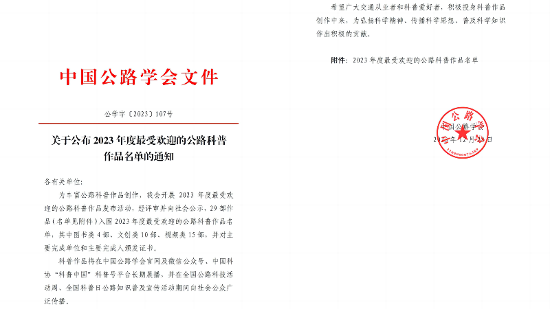 近日,中国公路学会公布了2023年度最受欢迎公路科普作品名单,由甘肃公路博物馆原创制作的“陇小路”说科普系列动画被评为2023年度最受欢迎公路科普作品!