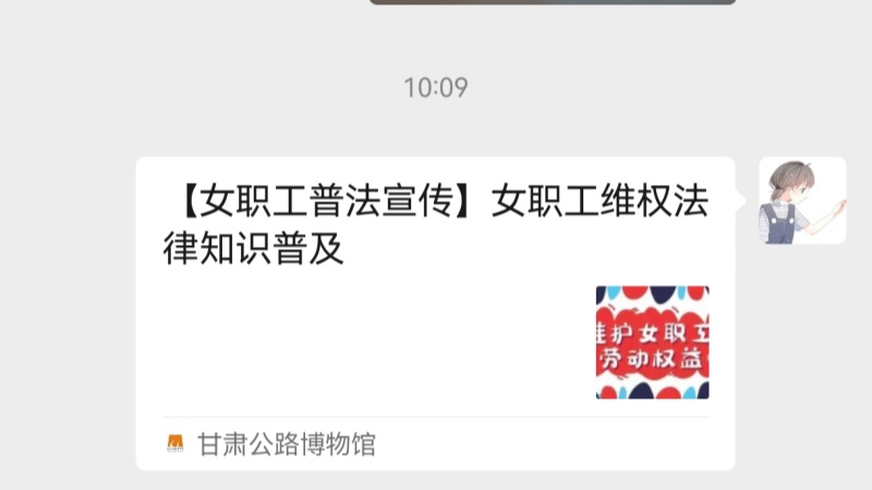 强化思想引领,普法宣传入人心。利用微信公众号及工作群,转发《妇女权益保障法》等法律法规知识,并线上观看女职工权益维护知识讲堂,进一步强化女职工素养,切实撑起法治“半边天”。