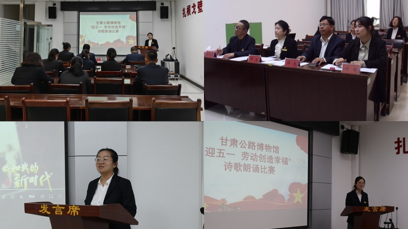 在“五一”国际劳动节到来之际,为丰富职工文化生活,共同礼赞奋斗的力量,歌颂筑梦华夏的劳动者精神,甘肃公路博物馆组织全馆职工开展了以“迎五一,劳动创造幸福”为主题的诗歌朗诵比赛活动。