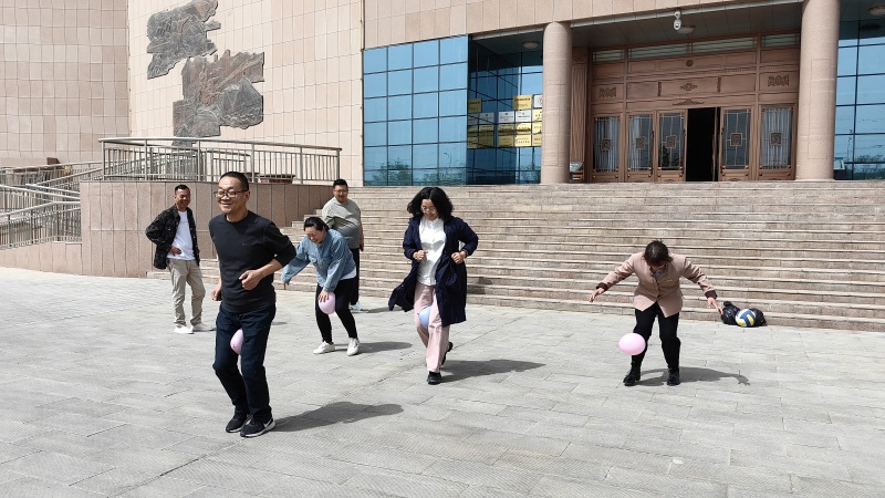 “双腿夹球跑”游戏,大家前往博物馆公路文化广场,统一在起点用双腿夹住气球,或跳跃或跑步前往终点,以保持气球不掉落。该环节不仅锻炼了职工腿部力量,而且提高了身体协调性,释放出了每个人的活力。