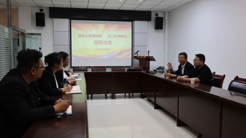 交流活动中,玉门市博物馆认真聆听讲解,了解了十工道班的先进事迹和“八棵树精神”。在座谈会上,重点就两馆的发展现状、藏品征集与管理、人才队伍建设、博物馆定级工作及新媒体宣传、文创产品开发等方面进行了探讨交流。双方一致表示今后将进一步加强馆际交流、互相学习和借鉴各自的好经验与好做法,来推动博物馆各项工作的高质量发展。