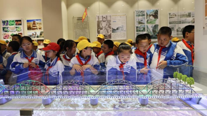 在兰州黄河铁桥模型前,讲解员科普了这座在中国建筑史上具有重要地位的桥梁,它不仅见证了兰州的历史变迁,也体现了中国近代建筑艺术的发展,是甘肃交通建设发展过程中的重要成就。从百年前引进技术建造的黄河铁桥,到如今立体交通网遍布全省,甘肃交通建设取得了巨大成就,也让学生们感受到国家强大与科技发展是密不可分的。