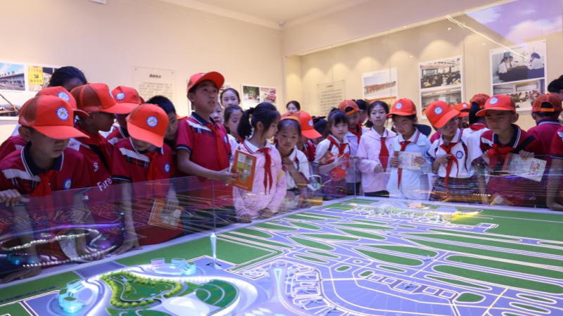 在甘肃综合立体交通体系发展成果展示区,学生们仔细观看了兰州中川机场T2、T3航站楼沙盘模型,讲解员说道:“甘肃交通发展的巨大成就离不开交通人的不懈奋斗,是他们以高度的责任感和使命感投身于甘肃交通的建设,使得丝路换新颜,天堑变通途”,并鼓励学生们立爱国之志,积极投身交通强国、科技强国建设。
