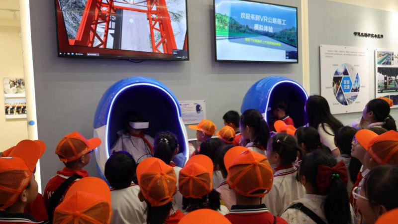 进入科普体验区,学生们对各种VR设备充满好奇,并亲身体验了VR公路路面施工和VR架桥机,感受真实交通建设场景,领悟科技创新魅力,引导学生将爱国主义精神内化于心、外化于行,为祖国的繁荣与发展贡献自己的力量。