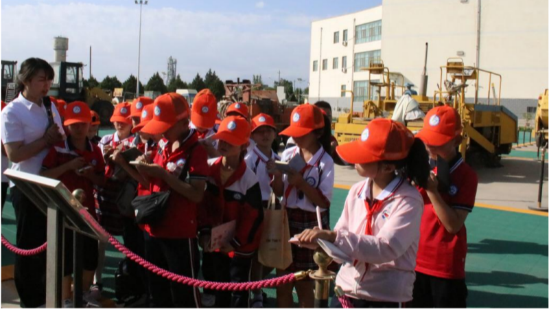 在室外车机设备展厅,学生们认识到车机设备的演变不仅体现着甘肃交通运输行业从肩扛手抬的方式向机械化、智能化的转变,也是我国生产力水平不断进步的重要体现。讲解员引导学生们深刻意识到我们今天的幸福生活来之不易,应该珍惜当下,努力学习,将来成为建设祖国的栋梁之材。