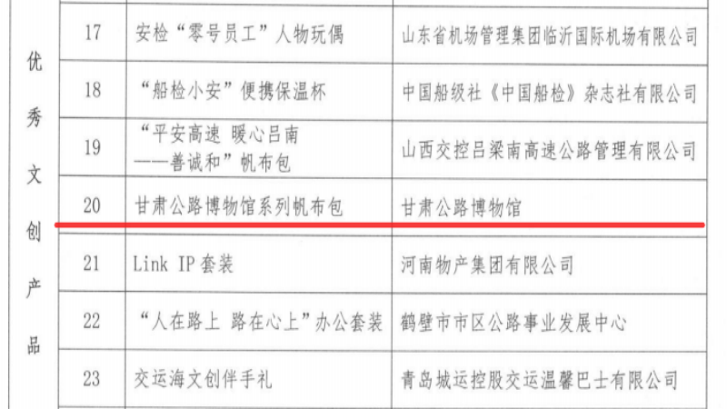 1.甘肃公路博物馆系列帆布包获第三届交通运输优秀文创产品称号