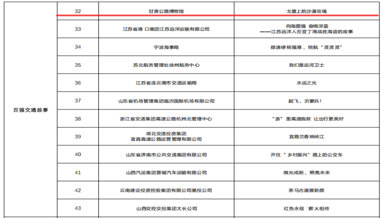 2.甘肃公路博物馆在第三届交通强国好故事宣讲活动中荣获“百强交通故事”称号