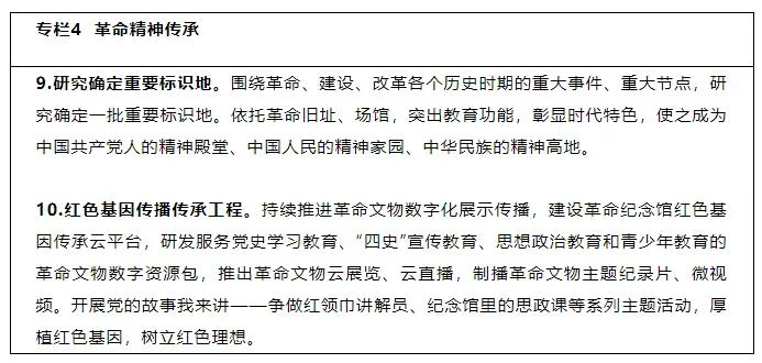 充分用好革命文物资源,主动服务党史学习教育和“四史”宣传教育,广泛弘扬以伟大建党精神为源头的中国共产党人精神谱系,研究确定一批重要标识地。持续推进宣传、文化和旅游、文物部门管理使用的革命文物保护单位全面对外开放,推动有条件的重要建设工程、科学工程、国防工程面向公众开放,鼓励引导旅游景区的革命旧址对特定人群免费开放。推动革命旧址、革命博物馆纪念馆建设富有特色的革命传统教育、爱国主义教育、青少年思想道德教育基地,支持馆校共建实践育人共同体,设计符合不同年龄、不同群体认知特点的多样化主题教育活动。提高革命文物传播能力,做好革命文物“三个百集”微视频制播工作。加强革命文物数字化展示,丰富网络空间革命文化内容,打造永不落幕的网上爱国主义教育空间。