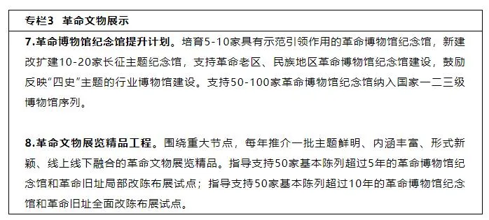 优化全国革命博物馆纪念馆区域布局,支持新建改扩建一批反映革命、建设、改革各个历史时期特别是中国特色社会主义新时代的伟大成就及重大事件、重要人物的革命博物馆纪念馆,新评定一批革命历史主题国家一二三级博物馆。坚持政治性、思想性、艺术性相统一,把好导向、聚焦主题,用史实说话,实事求是、恰如其分、公正客观评价历史事件和人物,着力打造高质量精品展陈,有效提升反映党的百年奋斗伟大历程的重要革命旧址展示水平。合理应用现代科技手段,增强革命文物陈列展览的表现力、传播力、影响力,讲好中国故事、中国共产党故事。